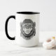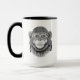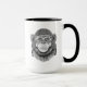 Denna design presenterar en schimpans som ha på sig en flygare- eller motocyclehjälm.
