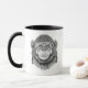 Denna design presenterar en schimpans som ha på sig en flygare- eller motocyclehjälm.