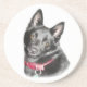 Underlägg med Pet Schipperke hund bild. Kallas "lille kapten" eller "liten skeppare", en mycket aktiv hund, kärlek för att vara delaktig och spela. Nyfiket och uppmärksamt, du kan inte hjälpa till utan falla i kärlek med det här "lilla svarta djävulen" ansikte.