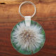 Eine hellbeige, sternförmige, Wildblume vor grünem Hintergrund ist auf diesem Schlüsselanhänger.