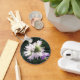 Eine hübsche, zerzauste Wildblüte vor dunklem Hintergrund ist auf diesem Schlüsselanhänger.