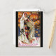 Överraska dina vänner med ett vackert vintage Halloween-kort med en utklädd kvinna och roliga pumpor i ryggen, målad av den amerikanske illustratören Samuel Loren Schmucker.