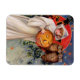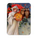 En annan vacker vintage flexibel Halloween-magnet med en kvinna med Jack O'Lantern och två uggla, målad av den amerikanske illustratören Samuel Loren Schmucker.