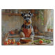Add a bold and charming touch to your kitchen with this Schnauzer design featuring a bearded pup cooking in a cozy setting. With its distinctive eyebrows, wiry coat, and expressive personality, this artwork captures the breed’s smart and lively nature.