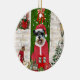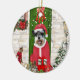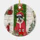 Schnauzer Hund jul sitta utanför det dekorerade hemmet med julkrans, Julgran är en julklapp för hundälskare i perfekt.