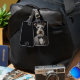 Schnauzer Hund Porträtt Grått Kostym Bow Tie Bagagebricka