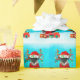 Att nauzer i snö njuter av julklappar med jultomten hatt och med christmas ljus är en perfekt gåva till någon som kärlek i hund aveln i