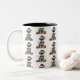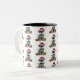 Roligt julkaffe kopp med en berömvärd Schnauzer inslagen i ljus under jul.