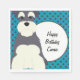 Cute Schnauzer-hund med svart och blå polkpunktsbakgrund och mittpunktstext för anpassade