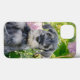 Schnauzer-valpen, 8 veckor gammal man hund, färg salt- och peppartorn jackar, sitta upprätt i en färgad blommar trädgård, denna ras kallas också Mittelschnauzer, Tyskland. Ett sött dogmatiskt foto från Katho Menden, det här fonecasen är en fantastisk gåva till hund och djurälskare.