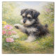 Schnauzer Puppy Springtime Flowers Kakelplatta