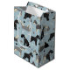 Cute Schnauzer hundar i svartvitt, salt och peppar och svart och silver jackar sitt, stå och välta med utspridda hund ben och tass avtryck på ljusblå bakgrund.