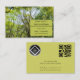 Herrliche grüne Baumwipfel mit geschwungenen Ästen bilden den Untergrund Ihrer Visitenkarte. Auf dem farblich harmonisch eingefügten hellgrünen Textfeld ist Raum für Ihre wichtigsten Daten - Firmennamen, Namen und Telefonnummer. Auf der passend hellgrünen Rückseite können sie alle weiteren Daten zu Ihrem Unternehmen platzieren