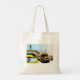 En scen i buss med stadens bakgrund. Den här designen ser ut att vara verkligen på den här Tote Bag