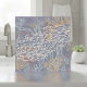 This coastal ceramic tile design features a lively school of stylized white fish swimming across a muted palette of seafoam, driftwood gold, deep bronze, and dusty violet. The flowing, hand-drawn lines create a sense of movement, while the abstract coral shapes and watery textures add depth and a calm, ocean-inspired atmosphere. Perfect for beach-inspired décor themes, it brings a touch of underwater serenity to any room. Note: design may contain generative content
