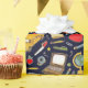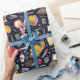 Kreativets lärare eller student-presentfigursättning eller party dekoration i skolan med klassrumsförråd och skolförråd från buss mönster.