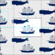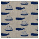 Nautisk design av schoonerfrakten och puckelryggval i marinblått.