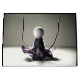 Een houten poppetje met een bloemen jurkje aan. Een simpele eenvoud van schoonheid en minimalisme. Een speels opkrullend rokje en vrouwelijke lijn in een bijna zwart witte afbeelding. Een centraal figuur van rechtop en trots met lichtomschijnsel helder.