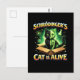 A playful science-themed illustration of Schrödinger’s cat glowing from a mysterious box, blending quantum physics with whimsical imagination.