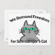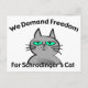Denna design visar att en arg kattunge med texten "oss begär frihet för Schrodingers katt". En rolig design för någon geek eller nerd som leker på ett berömdt tankeexperiment angående dubbelexistensen av en katt, när resultatet är okänt. *Nokatter harmed i endera det original- tankeexperiment eller i skapelsen av denna design.
