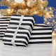 Ein Packpapier entworfen mit einem gestreiften Schwarzweiss-Muster in einer mittleren Stärke. Sie können das Weiße durch eine andere Farbe ersetzen.