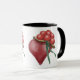 Handgezeichnetes Herz-Design mit einem Bollehut, grünem Band und skizzenhaften Schraffuren; ideal für romantische Kleidung, Accessoires und Vintage-Darstellungen.
