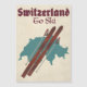 Schweiz att åka skidor vintage stil skidresor retro sport postkort.