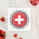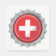 Schweiz flagga vid en övre gräns mot flaska. Den här designen ser ut att vara effektiv på dessa Pappra servetter