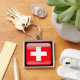 Schweiz flagga fyrkantig silverfärgad nyckelring