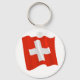 Detta är en schweizisk flagga. Den schweiziska flagga flödar i vinden. Den här schweiziska flagga ser underbar ut i den här nyckelkedjan
