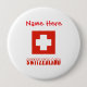 Knappnålen för personlig visar det schweiziska flagga med rött, snö-skyddat brev som läser Schweiz. Lägg till namn, även i rött brev, ovan för att ge en speciell gåva till någon eller dig själv. Underbar lagerstuffer. Det finns också mycket roligt att ha på familjeåterförening.