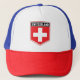 Den schweiziska flagga insprutas i en sköld som även har land namn ovanför flagga.