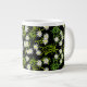 Originalkonst av Edelweiss-blommor från bergen i Schweiz av konstnären Carolyn McFann of Two Purring Cats Studio, tryckt på ett kvalitetsmärke och anpassade Jumbo Specity mugg för schweiziska alpina visslare fläkt.