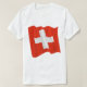 Denna design är en schweizisk flagga. Den schweiziska flagga fladdrar i vinden. Denna schweiziska flaggadesign ser underbar på denna manar T-tröja