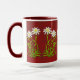 Den original- konstdesignen av vitEdelweiss blommor från Schweitz av konstnären Carolyn McFann av studion för två spinnakatter som skrivs ut på en kvalitets- mugg för schweizisk bergblomma, fläktar lite.
