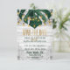 Elegant, rustik och land-tropisk strand Schweizisk ost Monstera löv på rustiskt vitt trä och snöre med faux tryckt guld folie typografi sommarkort Spara bröllop. Denna klassiska och sofistikerade utformning är perfekt för det trendig och det snyggt som gifter sig. Anpassa med ditt eget meddelande på framsidan och en anpassad inledande monogram på baksidan. All fotoutskriftsdesign.