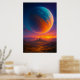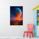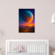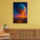 A massive glowing planet rises above a distant city at sunset, blending sci-fi imagination, surreal atmosphere, and cinematic color contrast. The artwork creates a powerful sense of scale, wonder, and quiet awe — a perfect statement piece for modern interiors.