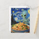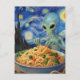 Scifi Blue Alien Eating Noodles Veggies Van Gogh Vykort