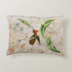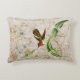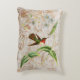 ) Görar grön bryner A och hummingbirden med röda flugor för en hals nära en tropisk tweediaväxt med ljust - blåa blommor, på en benvit vintagegrungebakgrund med guld virvlar runt och blom- silhouettes. Hummingbirdillustrationen avspeglas - vända mot motsatsriktningen - på baksidaen. Matcha rundan och kvadrera tillgängliga dekorativ kudde också.