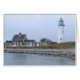 Här är en avbilda av den Scituate fyrvisningen det ljusa torn såväl som vårdare hus -- en beskåda som fångas från vatten. Den gammala strid-förskräckt fyren ser ganska elegant här. Kort.