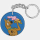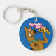 Ta en titt på Scooby-Doo sitta med ett stort leende och håll upp en bit av full crust pizza.