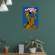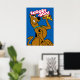 Ta en titt på Scooby-Doo sitta med ett stort leende och håll upp en bit av full crust pizza.