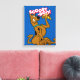 Kontrollera ut Scooby-Doo sitta med ett stort leende, innehav upp en skiva av välfylld skorpapizza.