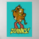 Kolla in den klassiska scenen Shaggy som håller en skrämt Scooby-Doo i sin arm, med den välkända frasen "ZOINKS!".