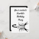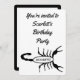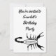 I Födelsedagsfest inbjudan i fantastisk finns en digital bild av en svart skorpion med stort klo och en stor lapp på svan, böjd ovanför överdelen av kroppen, med ord Scorpio i fet svart text inuti bålstommen. En roligt för människor som firar en födelsedag som föddes mellan den 24 oktober och den 21 november under stjärntecknet Scorpio. Det finns en anpassningsbar på framsidan och baksidan som gör att du kan anpassa inbjudan med all information om party.