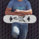 Skateboard i fantastisk har en digital bild av en svart skorpion med stort klo och en stor lapp på svan, böjd ovanför överdelen av kroppen, med ord Scorpio i fet svart text inuti bålstommen. En roligt för människor som firar en födelsedag som föddes mellan den 24 oktober och den 21 november under stjärntecknet Scorpio.
