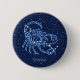 Knapp i zodiaksymbolen för Scorpio i mjukt blått silver, överdragen med stjärnorna i konstellationen, mot bakgrund av himlar, djup midnattblått