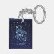 Nyckelkedja med zodiaksymbolen för Scorpio i mjuk blått silver, överdragen med stjärnorna i konstellationen, mot bakgrund av himlar från djup midnattsblå till svart.