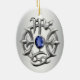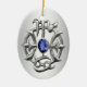 Oval keramiskt prydnadsämne med en bild på båda sidor av en silver Scorpio- och Pisces-medallion med en mousserande blå safir på silver. Se matcha akrylisk fotoskulpturornament. Se hela samlingen av Gemstones & Medallions Ornament i avsnittet HOME.