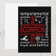 Utformning av molnet för märkre av coola med vissa zodiac-teckentermer med positiva och negativa Scorpion-personlighetsegenskaper.